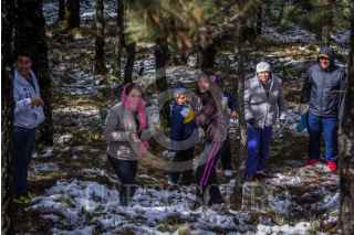 MÉXICO, D.F., 25DICIEMBRE2014.- Cientos de personas acudieron a la zona del Ajusco para jugar con la nieve que se encontraba debido a la lluvia y el frio registrados en las ultimas horas. Las familias acudieron a realizar muñecos y guerras de nieve luego de haber pasado los festejos de navidad. FOTO: ENRIQUE ORDÓÑEZ /CUARTOSCURO.COM