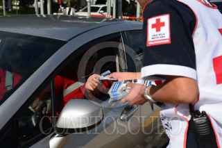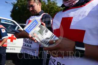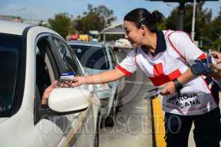 MÉXICO, D.F., 26DICIEMBRE2014.- En el marco de la campaña de seguridad vial que organiza la Cruz Roja Mexicana varios voluntarios de esta institución repartieron volantes con algunos consejos para evitar accidentes automovilísticos como abrocharse el cinturón de seguridad, conducir sobrio y tener en buen estado el automóvil. El volanteo se llevo a cabo en la caseta México - Cuernavaca. FOTO: ISABEL MATEOS /CUARTOSCURO.COM