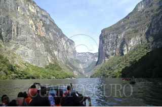 CHIAPA DE CORZO, 27DICIEMBRE2014.-El Cañón del Sumidero, es un estrecho cañón de gran profundidad situado a unos kilómetros de la capital Chiapaneca, esta belleza natural tiene un acantilado de más de 1000 metros y se levanta sobre el río Grijalva que tiene una profundidad de más de 250 metros, inicia en Chiapa de Corzo y desemboca en la presa hidroeléctrica Manuel Moreno Torres conocida como presa Chicoasen , durante sus 32 kilómetros los turistas pueden disfrutar de este imponente lugar donde puedes ver monos araña y cocodrilos principales especies que viven en el cañón. FOTO: ELIZABETH RUIZ /CUARTOSCURO.COM