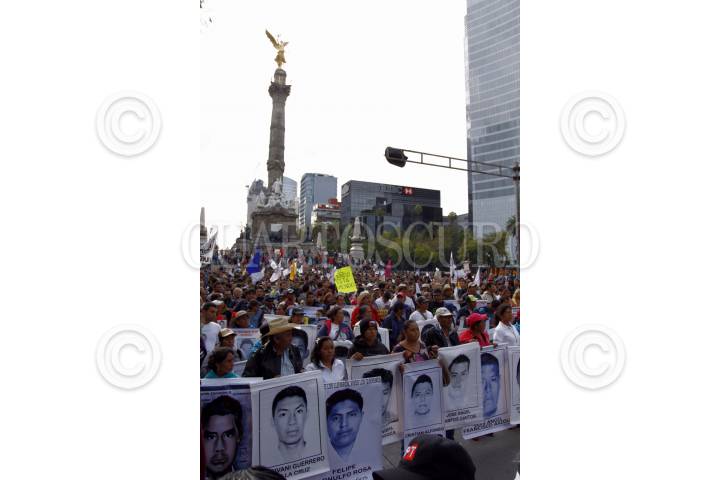 MÉXICO, D.F., 26DICIEMBRE2014.- Cientos de personas se reunieron en el Ángel de la independencia para manifestarse en apoyo a los familiares de los 43 estudiantes desaparecidos de Ayotzinapa, al finalizar, se realizo un mitin en el Monumento a la Revolución, donde los padres dieron su mensaje exigiendo al gobierno federal por la aparición con vida de sus hijos. FOTO: RASHIDE FRIAS / CUARTOSCURO.COM