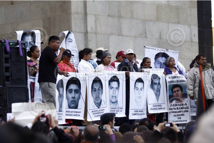 MÉXICO, D.F., 26DICIEMBRE2014.- Cientos de personas se reunieron en el Ángel de la independencia para manifestarse en apoyo a los familiares de los 43 estudiantes desaparecidos de Ayotzinapa, al finalizar, se realizo un mitin en el Monumento a la Revolución, donde los padres dieron su mensaje exigiendo al gobierno federal por la aparición con vida de sus hijos. FOTO: RASHIDE FRIAS / CUARTOSCURO.COM
