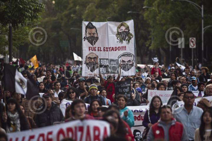 MÉXICO, D.F., 26DICIEMBRE2014.- Cientos de personas se reunieron en el Ángel de la independencia para manifestarse en apoyo a los familiares de los 43 estudiantes desaparecidos de Ayotzinapa, al finalizar, se realizo un mitin en el Monumento a la Revolución, donde los padres dieron su mensaje exigiendo al gobierno federal por la aparición con vida de sus hijos. FOTO: RASHIDE FRIAS / CUARTOSCURO.COM