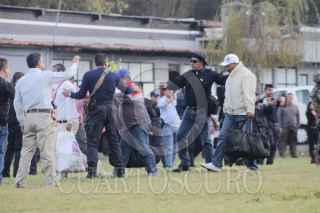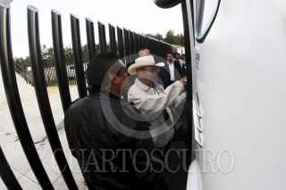 MORELIA, MICHOACÁN, 27DICIEMBRE2014. Hipólito Mora Chávez, fundador de las autodefensas de La Ruana, arribó al Cereso David Franco Rodríguez “Mil Cumbres”, en medio de un fuerte dispositivo de seguridad y en compañía de otras 7 personas, por su participación en el enfrentamiento ocurrido el pasado 16 de diciembre donde murieron 11 personas en la refriega, al ser atacados por Luis Antonio Torres “El Americano”. Hipólito Mora fue recibido por el titular de la Procuraduría General de Justicia del Estado (PGJE), José Martín Godoy Castro, para quedar a disposición del juez ante quien declarará. FOTO: JUAN JOSÉ ESTRADA SERAFÍN /CUARTOSCURO.COM