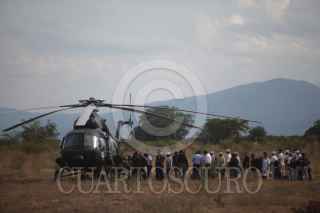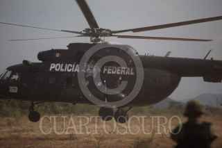 FELIPE CARRILLO PUERTO, MICHOACÁN, 27DICIEMBRE2014.- 27 elementos de la Fuerza Rural comandados por Hipólito Mora, se presentaron voluntariamente el día de hoy ante la justicia, un helicóptero de la Policía Federal y otro de la MARINA los trasladó a la ciudad de Morelia. FOTO: ALAN ORTEGA / CUARTOSCURO.COM