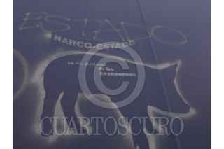 MÉXICO, D.F., 28DICIEMBRE2014.- Pinta en contra de lo que llaman Narco-Estado sobre un muro de un banco sobre Paseo de la Reforma. FOTO: MOISÉS PABLO /CUARTOSCURO.COM