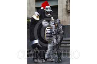 MÉXICO, D.F., 28DICIEMBRE2014.- Dos personas caracterizadas como personajes de películas y videojuegos conversan sobre la calle Francisco I. Madero de la colonia Centro. Decenas de personas han optado por este trabajo informal en el que cobran unos pesos por tomarse una fotografía con ellos. FOTO: IVÁN STEPHENS /CUARTOSCURO.COM