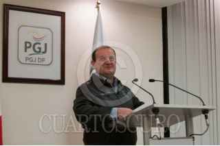 MÉXICO, D.F., 28DICIEMBRE2014.- Rodolfo Rios Garza, procurador capitalino, ofreció una conferencia de prensa para informar y esclarecer los hechos de la noche del pasado 24 de diciembre, cuando una persona asesino a 5 integrantes de una familia en un domicilio de la colonia Tlapechico, delegación Álvaro Obregón. El probable responsable es el sobrino de la familia, Iván Mena Trejo, quien se contradijo en las declaraciones y al final aceptó su participación, quien afirmó haberlo hecho para quedarse con un negocio familiar. FOTO: DIEGO SIMÓN SÁNCHEZ /CUARTOSCURO.COM