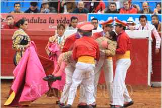 MÉXICO, D.F., 28DICIEMBRE2014.- La matadora Karla de los Ángeles recibió dos cornadas durante la décima corrida de la temporada grande en la Plaza de Toros. FOTO: GABINO ACEVEDO /CUARTOSCURO.COM