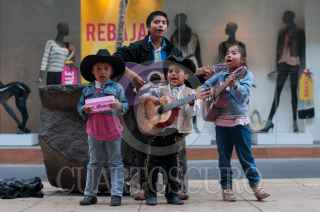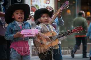 MÉXICO, D.F., 29DICIEMBRE2014.- Cantando a todo pulmón y tocando sus guitarras desgastadas, un grupo de 4 niños se gana la vida pidiendo monedas a las personas que caminan por la calle de Medro, en el centro histórico. En un evento oficial hace unos días, la Secretaría del Trabajo y Previsión Social (STPS), reconoció que en México hay 2.5 millones de niños trabajadores, que laboran principalmente en el sector comercial. FOTO: DIEGO SIMÓN SÁNCHEZ /CUARTOSCURO.COM