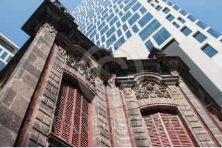 MÉXICO, D.F., 29DICIEMBRE2014.- El contraste de la arquitectura de distintas épocas se hace presente con dos edificios sobre Paseo de la Reforma. En los últimos años, los grandes rascacielos han opacado la vista de algunos edificios construidos del siglo XIX y XX, que seguramente en su época, eran los más altos de la ciudad. FOTO: DIEGO SIMÓN SÁNCHEZ /CUARTOSCURO.COM