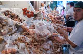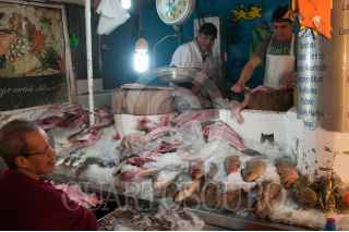 MÉXICO, D.F., 30DICIEMBRE2014.- Decenas de personas visitan el tradicional Mercado de San Juan, donde locatarios ofrecen todo tipo de carnes y mariscos. Los compradores acuden a buscar todo lo necesario para preparar la cena de año nuevo. FOTO: DIEGO SIMÓN SÁNCHEZ /CUARTOSCURO.COM