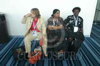 MEXICO D.F. 17MARZO2006.- Asistentes al IV Foro Mundial del Agua México 2006, se toman un descanso entre uno y otro foro. FOTO: Moisés Pablo/CUARTOSCURO.COM