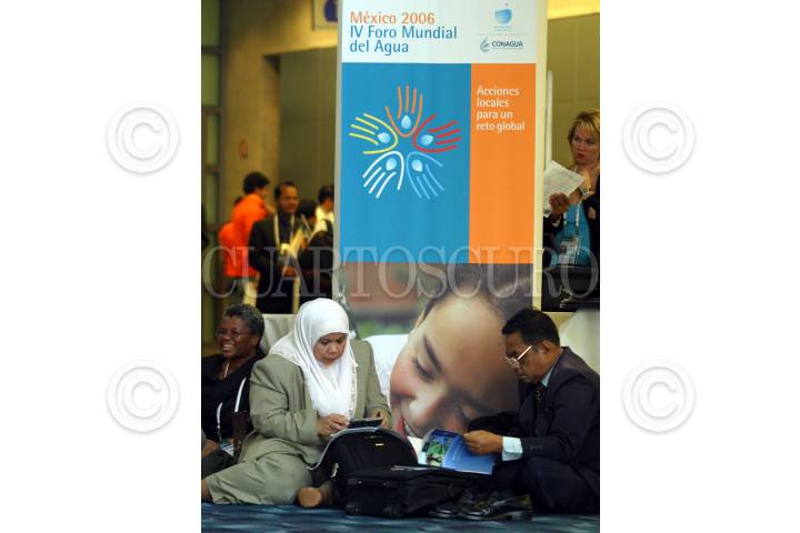 MEXICO D.F. 17MARZO2006.- Asistentes al IV Foro Mundial del Agua México 2006, se toman un descanso entre uno y otro foro. FOTO: Moisés Pablo/CUARTOSCURO.COM