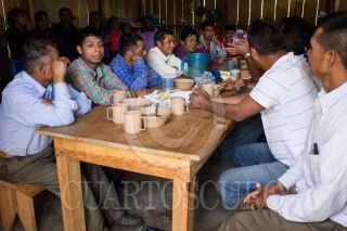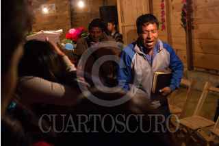 OCOSINGO, CHIAPAS, 02ENERO2014.- Reunión de líderes cristianos de diferentes comunidades tzeltales de los Altos de Chiapas. Entre ellos comparten los sermones que escuchan en diversas estaciones de radio cristianas locales o que leen en folletos o libros que reciben. FOTO: DAVID POLO /CUARTOSCURO.COM