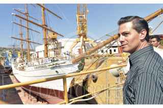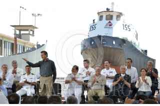 SALINA CRUZ, OAXACA, 02ENERO2015.- En el inicio de sus actividades públicas en 2015, el Presidente Enrique Peña Nieto anunció la construcción de 22 embarcaciones para Pemex en los astilleros de este puerto, con una inversión de 4 mil millones de pesos, y señaló que el Gobierno de la República está comprometido a asegurar que todas las acciones, todas las políticas públicas de orden social en materia de infraestructura que se están impulsando, impacten y beneficien a las familias mexicanas. FOTO: PRESIDENCIA /CUARTOSCURO.COM