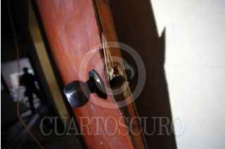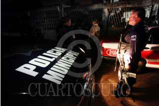 MEDELLÍN DE BRAVO, VERACRUZ., 03ENERO2015.- Elementos de la Policía Municipal resguardan la humilde vivienda del reportero Moisés Sánchez, secuestrado la noche del pasado viernes. Los familiares denunciaron que el comunicador fue privado de su libertad luego de haber sido sacado de su hogar, ubicado en la colonia Gutiérrez Rosas. Sánchez denunció durante las últimas semanas la creación de grupos de autodefensa urbana para proteger su comunidad. FOTO: FÉLIX MÁRQUEZ /CUARTOSCURO.COM