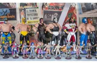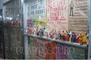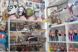 MÉXICO, D.F., 03ENERO2015.- Como una forma distinta de abordar la historia y la cultura popular mexicana, el Museo del Juguete Antiguo de México, ubicado en la colonia Doctores, alberga una colección de más de 20 mil piezas en exhibición y más de un millón en su bodega. El pasado mes de noviembre fue inaugurado el Salón de la Lucha Libre Mexicana, donde se alberga un repertorio inédito de muñecos, máscaras originales, carteles de encuentros importantes, fotografías, documentos y todo lo que tenga que ver con el tradicional deporte mexicano. FOTO: DIEGO SIMÓN SÁNCHEZ /CUARTOSCURO.COM