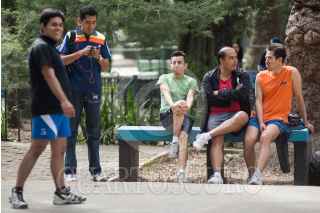MÉXICO, D.F., 03ENERO2015.- Un grupo de amigos se reúne junto a las canchas de voleibol para organizar las clásicas retas, y así disfrutar de varios partidos que duran aproximadamente 20 minutos cada uno. Entre risas, gritos y gotas de sudor disfrutan de una tarde sabatina. FOTO: ISABEL MATEOS /CUARTOSCURO.COM