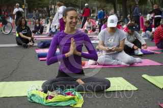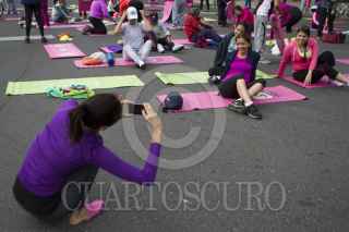 MÉXICO, D.F., 04ENERO2015.- Ciudadanos y turistas se congregaron este día en la Glorieta de la Diana Cazadora para asistir a la primera sesión de la Clase de Yoga Masiva, que el Gobierno de la Ciudad de México, por medio del Instituto del Deporte dirigió para comenzar el año nuevo con ejercicios que bajan el estrés, mejoran la condición física y mantienen un buen estado de ánimo. FOTO: IVÁN STEPHENS /CUARTOSCURO.COM