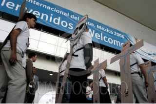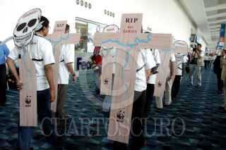 MEXICO, D.F., 17MARZO2006.- Integrantes del Fondo Mundial para la Naturaleza o en sus siglas en inglés World Wildlife Fund, organizaron una protesta pacífica por la muerte de varios ríos del mundo, en el marco del IV Foro Mundial del Agua México 2006, en el Centro Banamex. FOTO: Germán Romero/CUARTOSCURO.COM