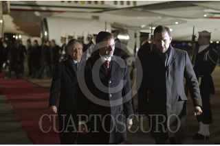 E.U.A., WASHINGTON D.C., 05ENERO2015.- El Presidente de México, Enrique Peña Nieto, arribó esta noche a la Base Aérea Andrews para iniciar una Visita Oficial a los Estados Unidos de América, en la que sostendrá una reunión con su homólogo estadunidense, Barack Obama. A su llegada, fue recibido por Eduardo Medina Mora, Embajador de México en este país, y el Embajador Peter Selfridge, Jefe de Protocolo de Estados Unidos de América. FOTO: PRESIDENCIA /CUARTOSCURO.COM