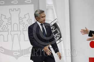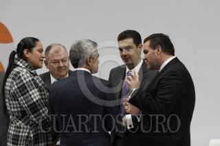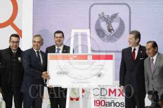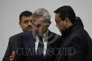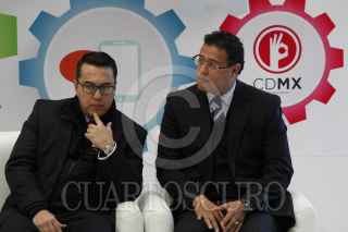 MÉXICO, D.F., 06ENERO2015.- Miguel Ángel mancera, Jefe de Gobierno y Eduardo Novelo Pico, contralor general del DF, durante la firma de convenio de colaboración para impulsar el modelo de un gobierno eficiente, en el patio del Antiguo Palacio del Ayuntamiento. FOTO: MOISÉS PABLO /CUARTOSCURO.COM