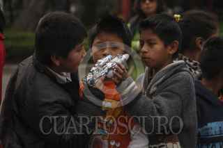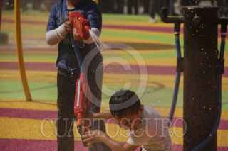 MÉXICO, D.F., 06ENERO2015.- A pesar de que en la ciudad de México se implementara el programa de desarme voluntario, el cual incluye que los niños cambien juguetes bélicos por juguetes recreativos, este día de reyes muchos niños disfrutaban de armas de juguetes apuntándose unos a otros. FOTO: ISABEL MATEOS /CUARTOSCURO.COM