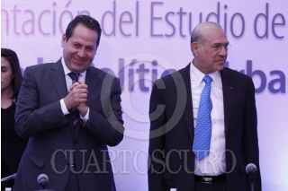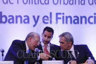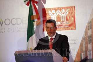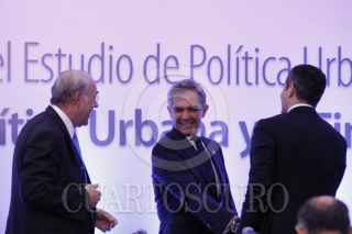 MÉXICO, D.F., 06ENERO2015.- José Ángel Gurría, secretario general de la Organización para la Cooperación y el Desarrollo Económicos, Alejandro Murat Hinojosa, director del Infonavit, y Miguel Ángel Mancera, Jefe de Gobierno, durante la presentación del estudio "Resultados del estudio de Política Urbana nacional de la OCDE" en el auditorio del Infonavit. FOTO: MOISÉS PABLO /CUARTOSCURO.COM