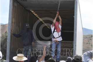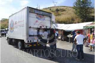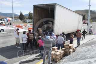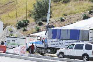 CHILPANCINGO, GUERERRO, 08ENERO2015.- Un grupo de la Coordinadora Estatal de Trabajadores de la Educación en Guerrero (Ceteg) y Frente de Organizaciones del Estado de Guerrero (FODEG) que forma parte de Movimiento Popular Guerrerense (MPG) quienes dieron paso libre a los automovilistas después de su aportación voluntaria, pidieron productos empresas de los cuales trasportabas en camiones a centro de distribuciones. FOTO: JOSÉ I. HERNÁNDEZ / CUARTOSCURO.COM