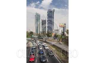 MÉXICO, D.F., 09ENERO2015.- Sobre el Circuito Interior se observan las tres torres; Torre Mayor, Torre Reforma y la Torre BBVA Bancomer, éstas dos últimas en construcción. Estas grandes construcciones le han venido dar un aspecto diferente a este cruce de Reforma, entre éstos gigantes se encuentra la Estela de Luz. FOTO: MOISÉS PABLO /CUARTOSCURO.COM