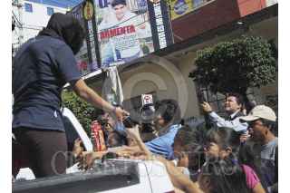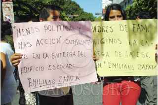 CHILPANCINGO, GUERRERO, 09ENERO2015.- Padres de familia de la escuela primaria Emiliano Zapata y personal docente bloquearon la avenida Juan N. Álvarez, para exigir al gobierno del estado aplique el recurso del Fonden, la institución tiene dañadas 6 aulas que fueron afectadas por el huracán Manuel e Ingrid en el 2013. Al lugar llegaron alumnos de la normal rural Raúl Isidro Burgos a repartir galletas, refrescos y frituras a los quejosos. FOTOS: JOSÉ I. HERNÁNDEZ / CUARTOSCURO.COM
