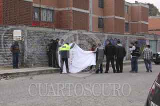 ECATEPEC, EDOMEX, 09ENERO2015.- Vecinos de la calle Lago de Chapala descubrieron el cuerpo de un hombre que presuntamente fue tirado desde un auto en movimiento, con una herida de arma punzo cortante en el cuello, esto supuestamente para que el cuerpo se desangrara en las cercanías de la zona habitacional Llanos de los Baez, Ecatepec. FOTO: DIEGO REYES /CUARTOSCURO.COM