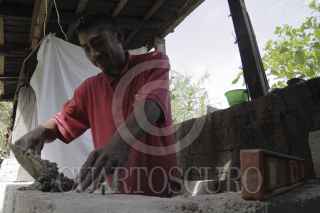 ACAPULCO, GUERRERO, 10ENERO2015.- El maestro de nombre Herubey Garcia, quien se desempeña como maestro de la cuchara grande, señala que aunque su trabajo es mal pagado el aprendió el oficio desde pequeño ya que se ha transmitido desde generaciones en su familia "yo no tengo descansos ya que ando en chinga hasta que el cuerpo aguante, hasta que se cabae la pila", subraya mientras trabaja en la construcción de un baño, "me lo reviento en menos de una semana", ésto en la colonia Miguel de la Madrid. FOTO: BERNANDINO HERNÁNDEZ /CUARTOSCURO.COM