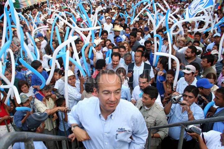 TUXPAN, VERACRUZ 18MARZO2006.- Felipe Calderón, candidatado del PAN a la Presidencia de la República, durante su mitin de campaña. FOTO:Alfedro Guerrero/CUARTOSCURO.COM