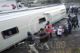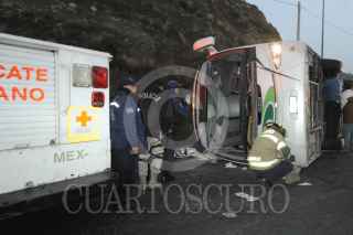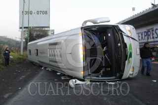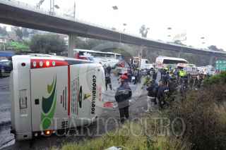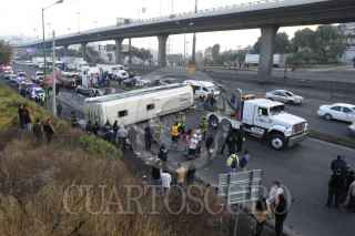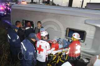 CUAUTITLAN IZCALLI, ESTADO DE MÉXICO., 11ENERO2015.- 20 personas resultaron lesionadas, entre estas 6 que presentaban mutilaciones de diferentes miembros, dejó como saldo la volcadura del autobús de la línea Coordinados, procedentes de León Guanajuato. El accidente, se registró en el Km. 27 de la autopista México Querétaro con dirección al D.F. a la altura de la colonia La Quebrada en este municipio. Los lesionados, fueron trasladados a diferentes Hospitales por unidades de Cruz Roja de Atizapán, Cuautitlán y Tlalnepantla. FOTO: LUIS CARBAYO /CUARTOSCURO.COM