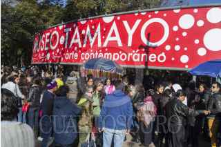 MÉXICO, D.F., 11ENERO2015.- Cientos de personas hacen fila desde antes de que abra el Museo Tamayo Arte Contemoraneo, con la finalidad de alcanzar una entrada para ingresar a ver la exposición "Yayoi Kusama. Obsesión Infinita". Alrededor de 2 mil 100 personas acuden diaramente al museo y más de 204 mil han observado la retrospectiva de la artista japonesa. FOTO: ISAAC ESQUIVEL /CUARTOSCURO.COM