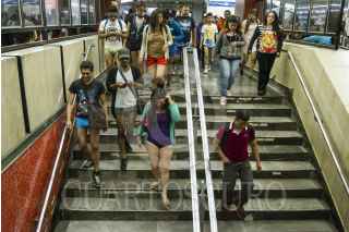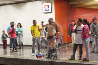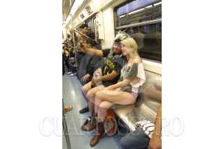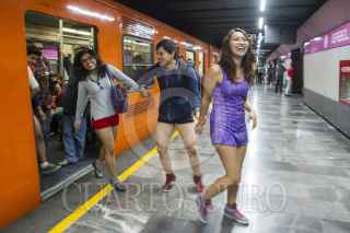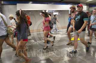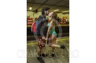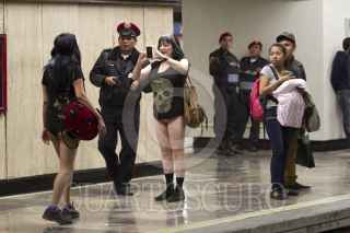 MÉXICO, D.F., 11ENERO2015.- Una persona decidió quitarse la ropa al ver a los jóvenes que pasearon sin pantalones por diversas estaciones del sistema colectivo metro, durante el quinto “Paseo sin Pantalones” organizado a través de redes sociales. De manera simultánea, habitantes de otras 40 ciudades en el mundo realizaron el viaje con el objetivo de crear escenarios urbanos fuera de lo común. FOTO: GUILLERMO PEREA /CUARTOSCURO.COM