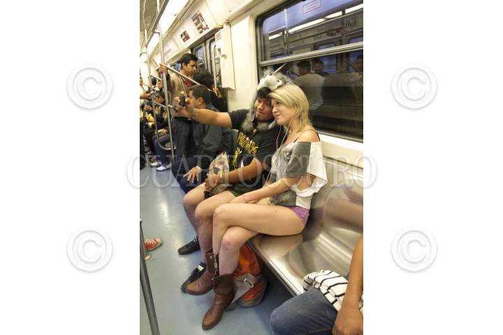 MÉXICO, D.F., 11ENERO2015.- Una persona decidió quitarse la ropa al ver a los jóvenes que pasearon sin pantalones por diversas estaciones del sistema colectivo metro, durante el quinto “Paseo sin Pantalones” organizado a través de redes sociales. De manera simultánea, habitantes de otras 40 ciudades en el mundo realizaron el viaje con el objetivo de crear escenarios urbanos fuera de lo común. FOTO: GUILLERMO PEREA /CUARTOSCURO.COM