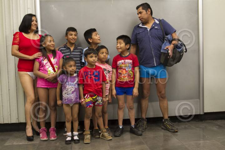 MÉXICO, D.F., 11ENERO2015.- Una persona decidió quitarse la ropa al ver a los jóvenes que pasearon sin pantalones por diversas estaciones del sistema colectivo metro, durante el quinto “Paseo sin Pantalones” organizado a través de redes sociales. De manera simultánea, habitantes de otras 40 ciudades en el mundo realizaron el viaje con el objetivo de crear escenarios urbanos fuera de lo común. FOTO: GUILLERMO PEREA /CUARTOSCURO.COM