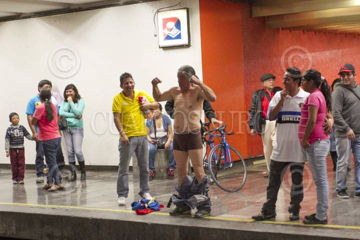 MÉXICO, D.F., 11ENERO2015.- Una persona decidió quitarse la ropa al ver a los jóvenes que pasearon sin pantalones por diversas estaciones del sistema colectivo metro, durante el quinto “Paseo sin Pantalones” organizado a través de redes sociales. De manera simultánea, habitantes de otras 40 ciudades en el mundo realizaron el viaje con el objetivo de crear escenarios urbanos fuera de lo común. FOTO: GUILLERMO PEREA /CUARTOSCURO.COM