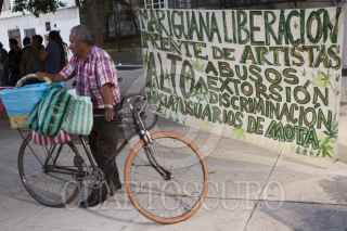 MÉXICO, D.F., 11ENERO2015.- Organizaciones sociales se manifestaron a favor de la liberación del consumo de la mariguana en la Plaza Luis Pasteur ubicada en el cruce de la Avenida Insurgentes y Reforma. FOTO: IVÁN STEPHENS /CUARTOSCURO.COM