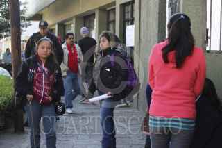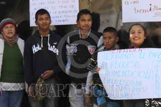 MORELIA, MICHOACÁN, 12ENERO2015.- Padres de familia y autoridades de la Secundaria Comunitaria Técnica número 135 de Zirahuén, encabezados por el director del plantel, tomaron las instalaciones de la Secretaría de Finanzas y Administración para exigir el pago de al menos 350 mil pesos por concepto de alimentación que se les adeuda desde el ciclo fiscal 2014. La escuela fue construida en 2003 por la población indígena a base de trabajo colectivo. FOTO: JUAN JOSÉ ESTRADA SERAFÍN /CUARTOSCURO.COM