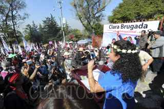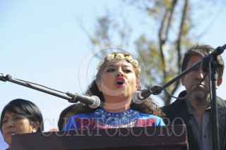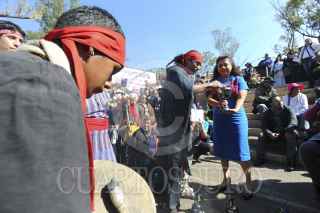 MÉXICO, D.F., 13ENERO2015.- Clara Brugada, ex perredista y ex jefe delegacional de Iztapalapa, lanzó su precampaña para contender a la jefatura delegacional de Iztalapa pero ahora por parte del partido fundado por Ándres Manuel López Obrador, Morena. En una ceremonia prehispánica realizada en el Museo del Fuego Nuevo a un costado del Cerro de la Estrella sus simpatizantes realizaron un ritual para brindarle suerte en su contienda política. FOTO: MOISÉS PABLO /CUARTOSCURO.COM