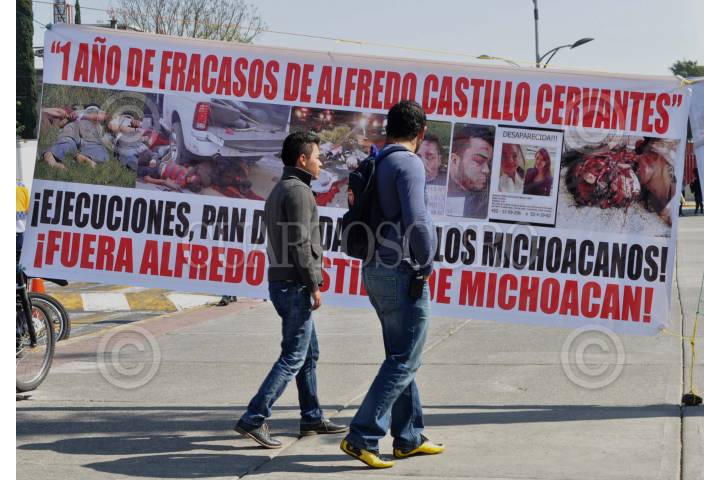 MÉXICO, D.F., 13ENERO2015.- Guillermo Valencia, edil de Tepalcatepec acompañado de Ana Valencia,esposa del doctor José Manuel Mireles Valverde, acudieron a la protesta en contra de Alfredo castillo Cervantes a las afueras de la Cámara de Diputados. FOTO: SAÚL LÓPEZ /CUARTOSCURO.COM