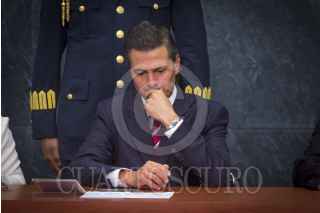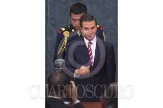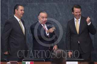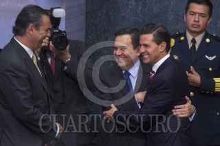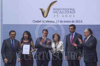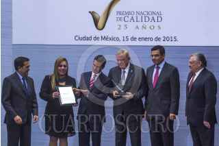 MÉXICO, D.F., 15ENERO2015.- Gerardo Gutiérrez Candiani, Presidente del Consejo Coordinador Empresarial (CCE) junto a Ildefonso Guajardo, Secretario de Economia y Enrique Peña Nieto Presidente de la República durante la XXV Entrega del Premio Nacional de Calidad 2014 que tuvo lugar en la Residencia Oficial de los Pinos. FOTO: ENRIQUE ORDÓÑEZ /CUARTOSCURO.COM