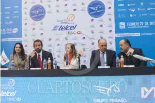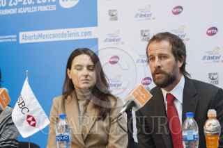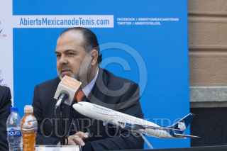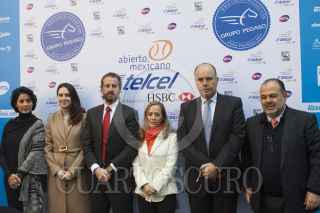 MÉXICO, D.F., 15ENERO2014.- Fernanda Anaya, representante del gobierno de Guerrero, Gemma Liébanas, representante de HSBC, Javier Braun, director de operaciones del grupo Pegaso, Valentina Gómez, gerente de patrocinios de Telcel, Antonio Vera y Raúl Zurutuza, director general del Abierto Mexicano de Tenis, durante la presentación del Abierto Mexicano de Tenis 2015 que se realizará en Acapulco. Los organizadores señalaron que ellos esperan e invitan a la gente que acuda a este evento deportivo que a lo más encontrarán gente pidiendo cooperación en las casetas en lugar de pagar el peaje, señalo Braun. FOTO: MOISÉS PABLO /CUARTOSCURO.COM