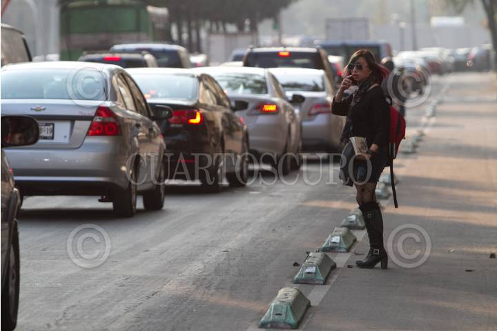 MÉXICO, D.F., 15ENERO2015.- Una joven, espera que algún automovilista le de el paso para poder cruzar avenida Chapultepec. En la Ciudad de México, muere diariamente por lo menos un peatón atropellado, por lo que se estima que después de los homicidios los accidentes de tránsito son la principal causa de muerte entre la población de 20 a 29 años de edad, de acuerdo con el Consejo Nacional para la Prevención de Accidentes (Conapra). FOTO: GUILLERMO PEREA /CUARTOSCURO.COM