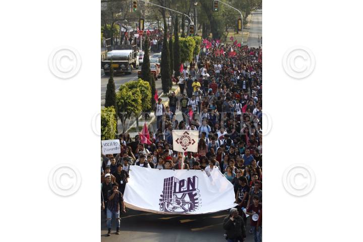 MÉXICO, D.F., 15ENERO2015.- Cientos de estudiantes de distintos CECyTs del Instituto Politécnico Nacional marcharon desde la Plaza Roja hacia la Dirección General en Zacatenco en demanda a que renuncien los distintos directores de los planteles de educación media superior. Al llegar a la Dirección General un grupo de estudiantes de educación superior intentó brincar la reja por lo que la mayoría de los estudiantes rechazó; posteriormente abrieron una puerta de la reja y un grupo de estudiantes ingresó a las instalaciones de la Dirección genera mientras la mayoría espero afuera. FOTO: RODOLFO ANGULO /CUARTOSCURO.COM