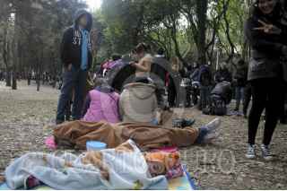 MEXICO, D.F., 17ENERO2015.- A pesar del clima frío que se sintió en la ciudad durante la mañana, cientos de capitalinos se formaron desde tempranas horas para conseguir una boleto de entrada al maratón de la muestra Obsesiòn Infinita, de la artista japonesa Yayoi Kusama, misma que termina este fin de semana. Las entradas para la muestra se agotaron alrededor del medio día, por lo que muchos decidieron hacer filas desde hoy para comprar boletos mañana a primera hora. En la imagen, capitalinos acampan horas antes de la apertura del museo. FOTO: CUARTOSCURO.COM