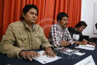 MÉXICO, D.F., 18ENERO2015.- Alberto Galindo, líder del CNPA y Eduardo Navarro presidente del Frente Popular Francisco Villa, en conferencia de prensa anunciaron que el próximo lunes 26 de Enero realizaran una mega-caravana que partirá desde Chiapas hacia la Ciudad de México para exigir una audiencia con el Secretario de Gobernación y pedir la libertad de presos políticos de organizaciones populares y campesinas. FOTO: SAÚL LÓPEZ /CUARTOSCURO.COM